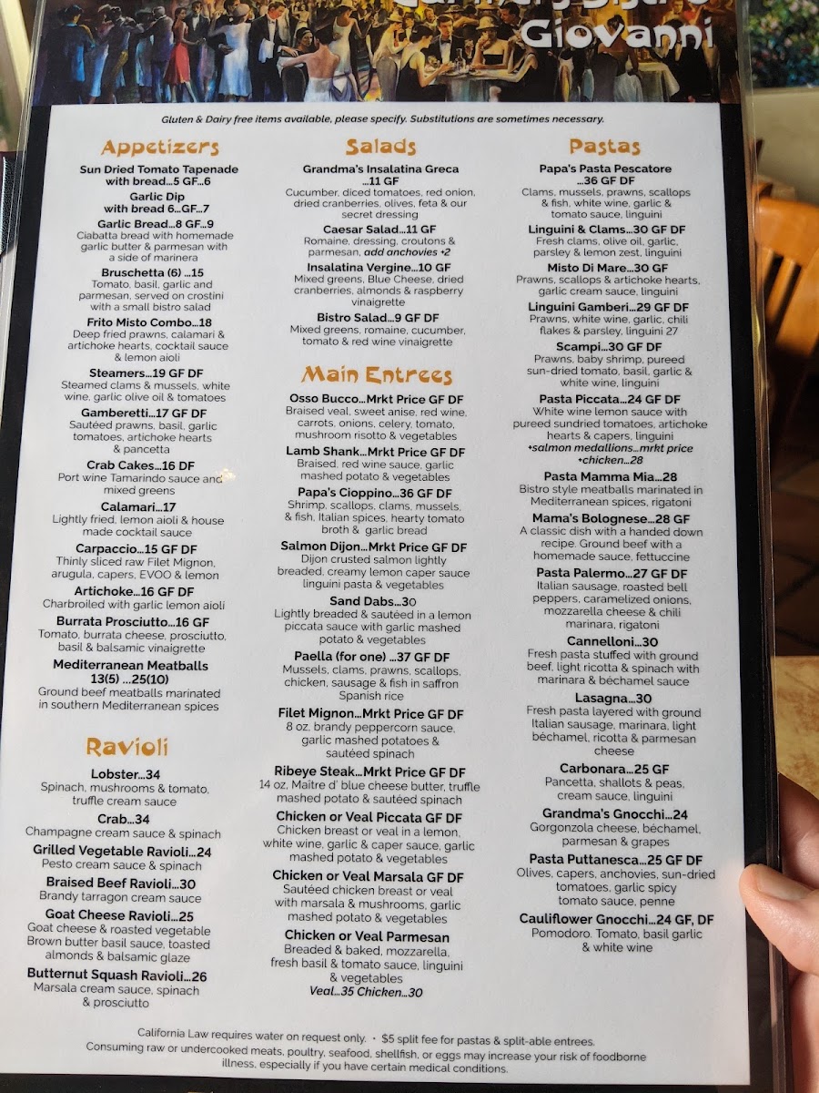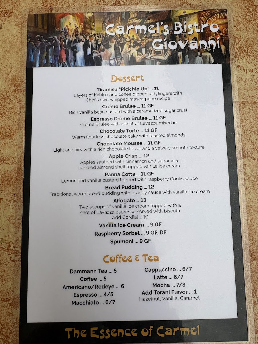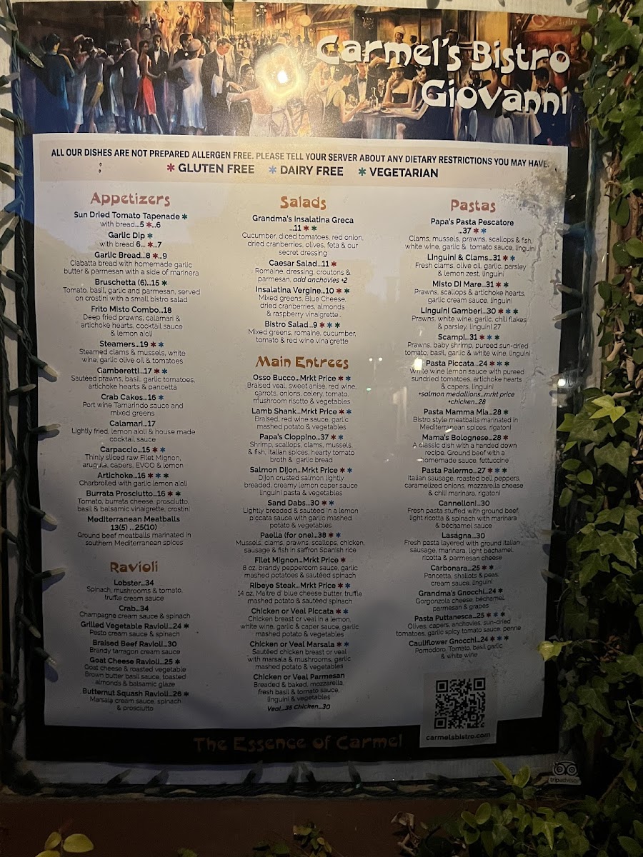 Situated artistically between 5th and 6th Avenues in the picturesque town of Carmel-By-The-Sea, Carmel's Bistro Giovanni is an inviting Italian restaurant that captures the heart of its visitors through culinary excellence and a charming ambiance. Known for its authentic Italian dishes, this bistro perfectly balances classic flavors with a modern dining experience, making it a must-visit destination for both locals and tourists alike.