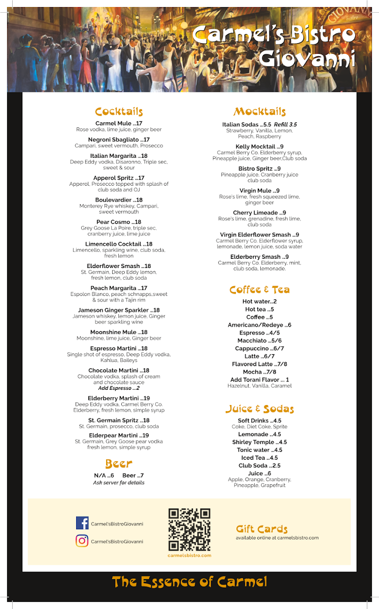 With a commitment to quality ingredients, authentic flavors, and unparalleled service, Carmel's Bistro Giovanni stands out as a culinary gem in Carmel-By-The-Sea. Whether you're a local seeking comfort food or a traveler looking to indulge in genuine Italian fare, your taste buds will thank you for choosing this remarkable dining spot. Make your reservation today and experience the true essence of Italy right in the heart of Carmel!